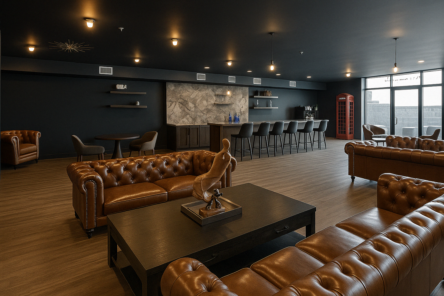 AQUA’s club room blends classic style with a modern edge, offering a sophisticated setting curated for both comfort and character. Tufted leather seating, a sleek stone-accented bar, and a pool table anchor the space in timeless elegance, while expansive windows fill it with natural light. Ideal for quiet workdays, intimate gatherings, a wine tasting class or unwinding in good company.
