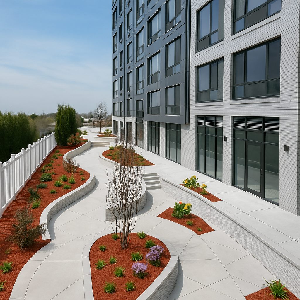 AQUA’s pedestrian plaza is a calm, open-air retreat designed for everyday moments—morning coffee, evening drinks, or casual time with neighbors. Thoughtful landscaping and flowing architecture extend the energy of OT Social outdoors, blending comfort with connection.